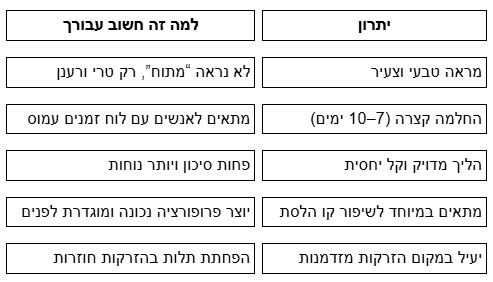 - פרוצדורה קצרה יחסית עם חזרה מהירה לשגרה